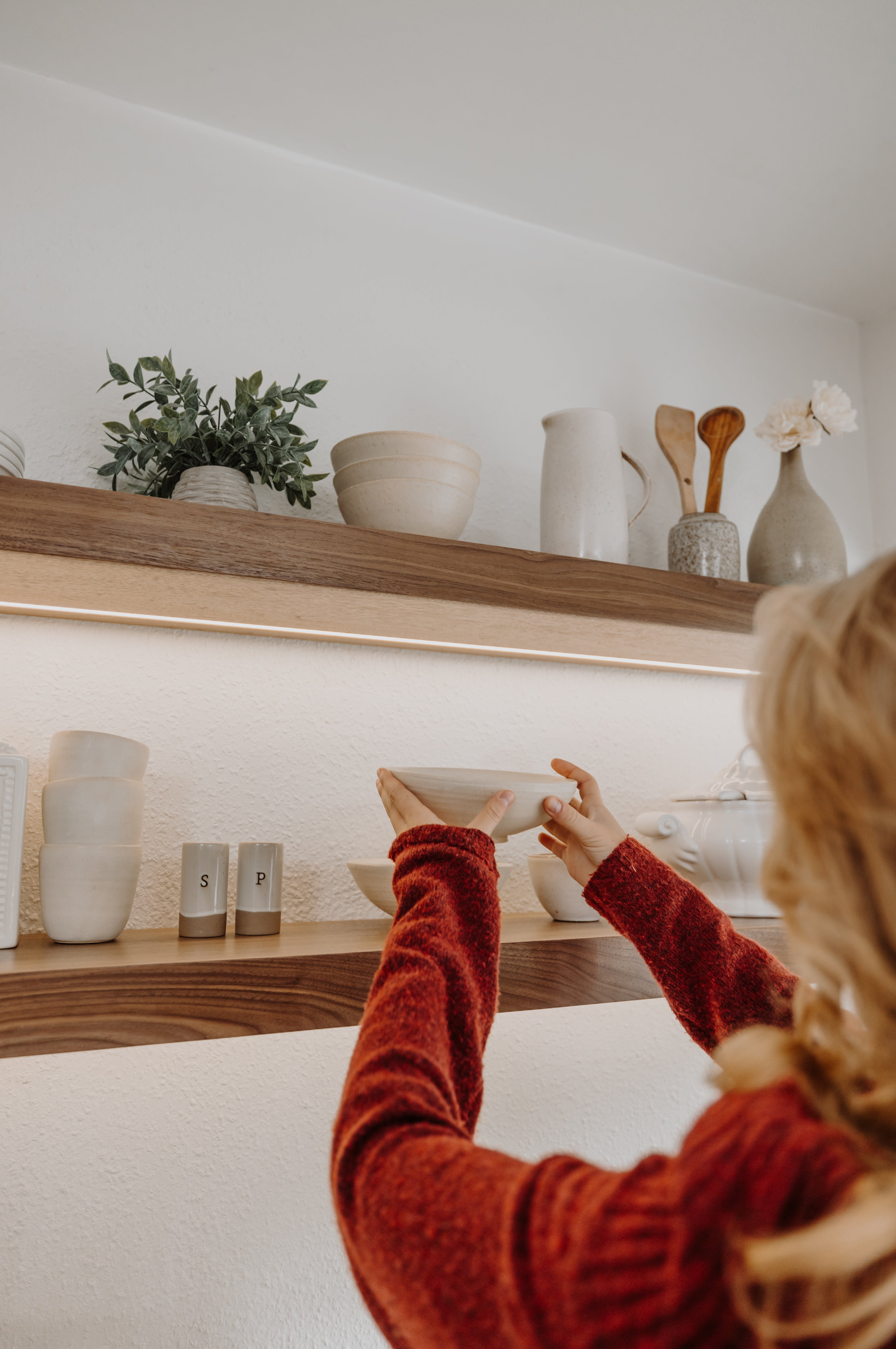 Make your kitchen, living room, or bedroom stunning with our handmade LED light walnut floating shelves. They are not just shelves—everything is a masterpiece. Each produces a modern light that enhances your space, uniting functionality and mood in the most beautiful way.